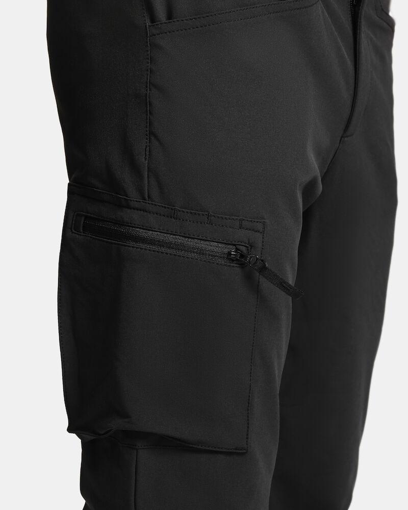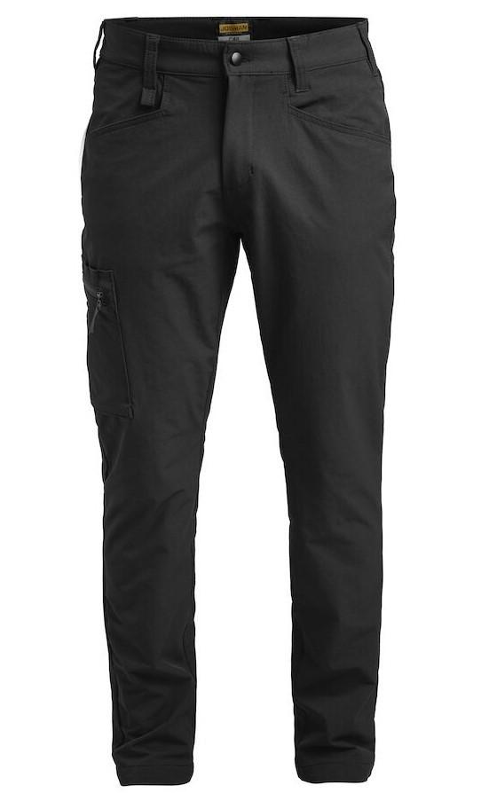 Servicebyxa i smidig 4-vägs stretch i polyamid/elastan kvalitet med smal passform. Rymliga framfickor. Stolpfickor bak. Blixtlåsförsedd benficka med extra fack inuti för mobilen. Plats för pennor i denna ficka