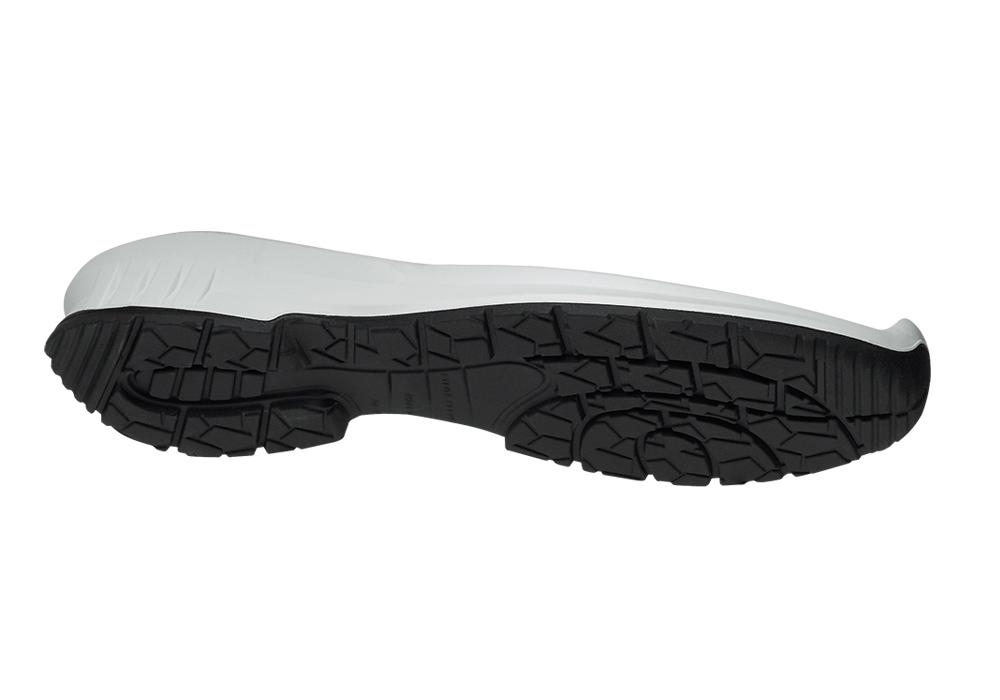 Modern skyddssko i mesh textil, sportig design med hälrem, bekväm passform tack vare sömlös skodesign, tåskydd, design utan metall, funktionellt foder av ventilerande textil och mikrofiber, avtagbar komfortinnersula ERGO-SOFT ESD. Textilt spiktrampskydd.
